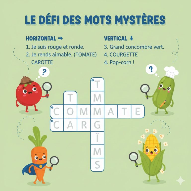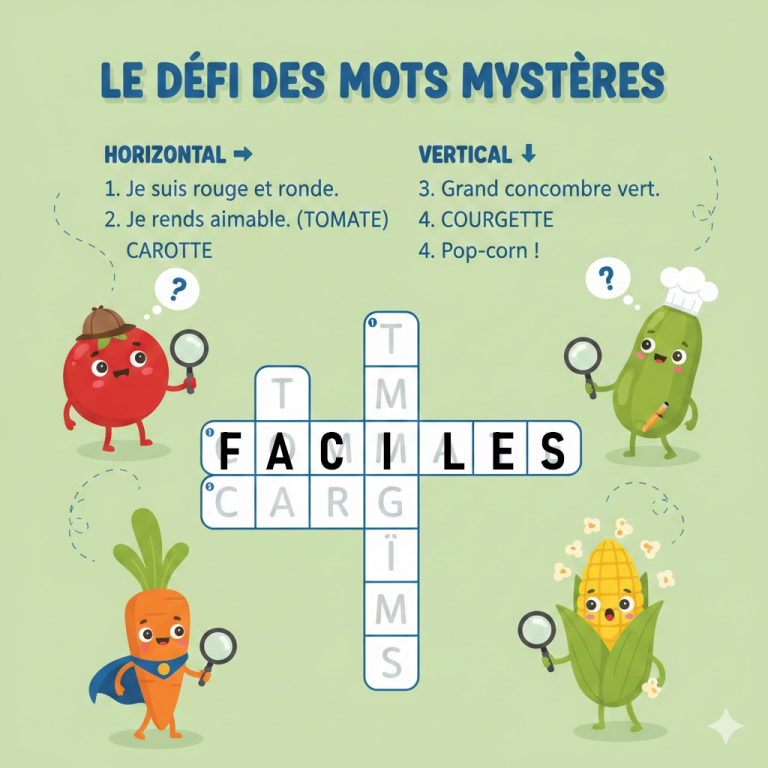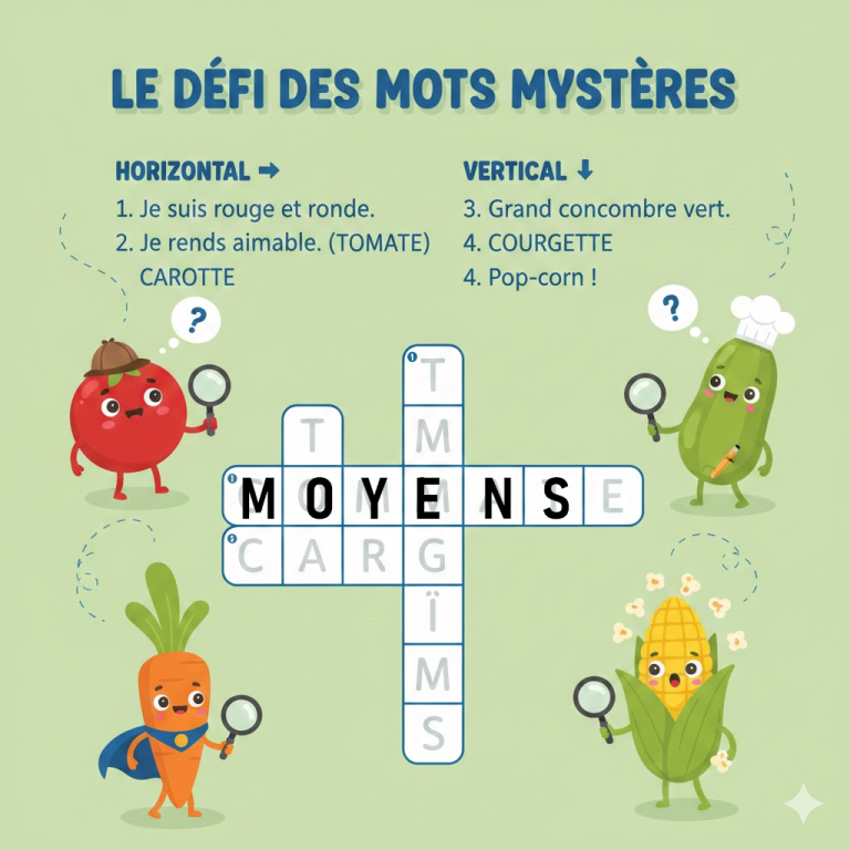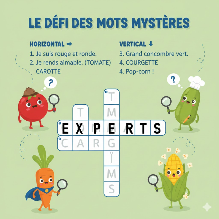 Prêt à faire chauffer tes neurones ? Deviens un véritable détective des lettres ! Lis bien les indices, trouve les mots cachés et remplis la grille pour débloquer le message secret. À toi de jouer, champion !