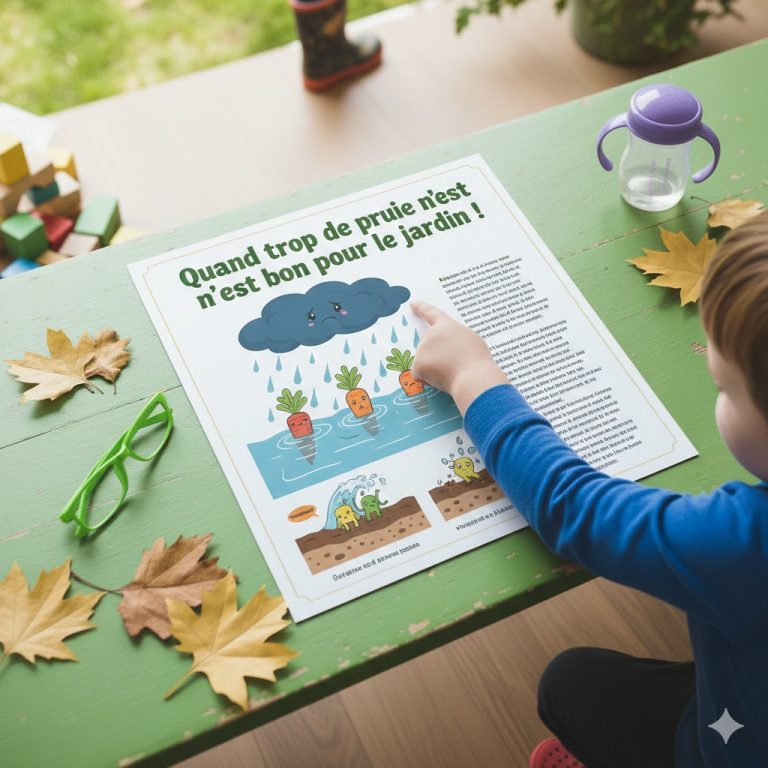 La pluie, c’est super pour désaltérer la terre, mais parfois, la météo fait des blagues et il pleut, il pleut, sans arrêt ! ☔️ Imagine ton petit potager. Quand il pleut trop fort, c’est comme si la terre buvait trop…